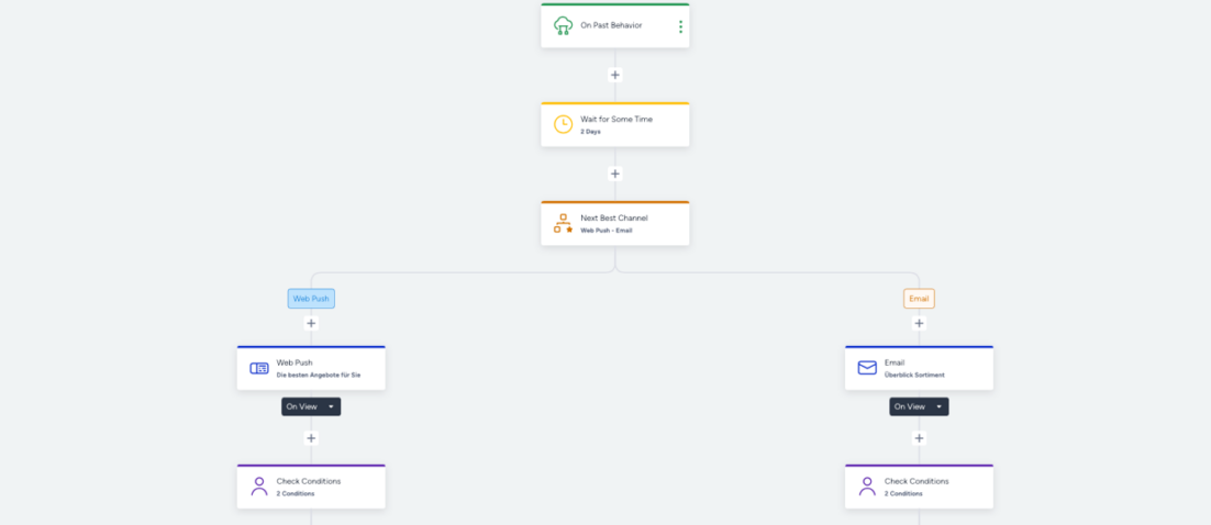 Next-Best-Channel entschieden, ob der Kunde zunächst über Web-Push oder per E-Mail angesprochen wird. Beide Varianten machen den Kunden auf das passende