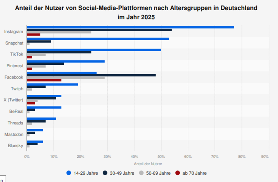 Abbildung 3: Plattformnutzung nach Altersgruppen (Deutschland 2025)